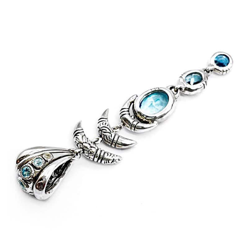 The 3 topazes spinning pendant is One of a Kind Silver Pendant featuring blue topazes moving independently. Each of the top archs spins.  Total length 70mm