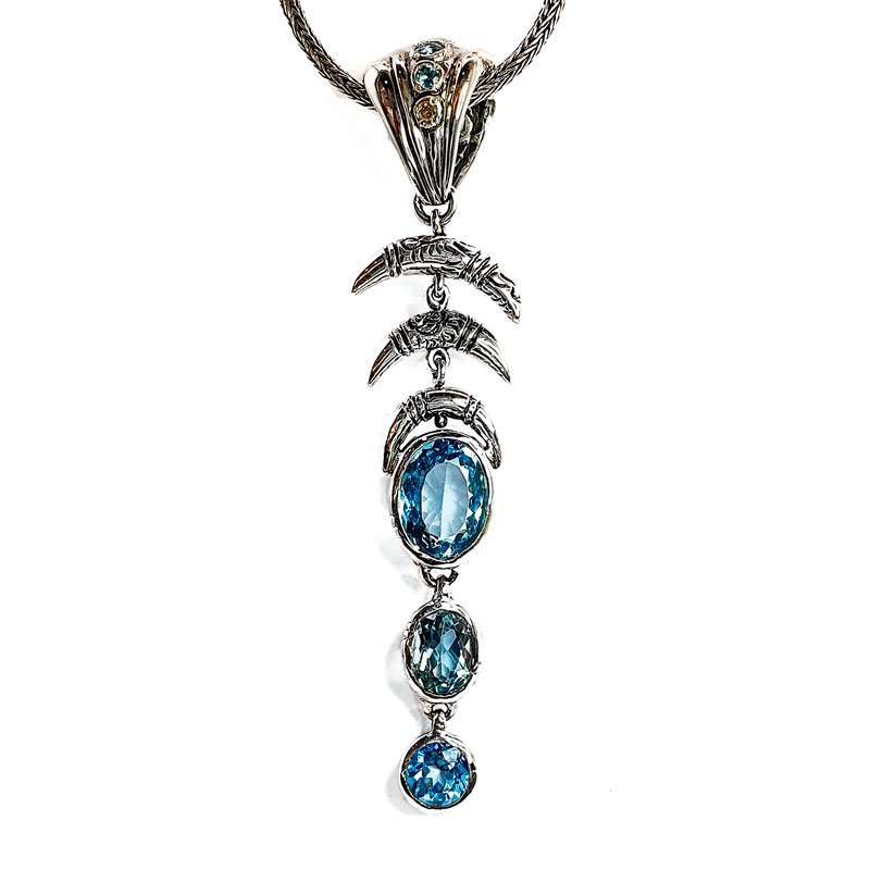 The 3 topazes spinning pendant is One of a Kind Silver Pendant featuring blue topazes moving independently. Each of the top archs spins.
