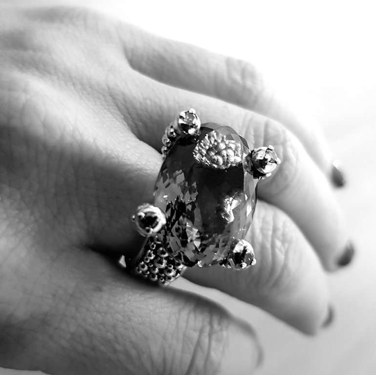 This ring has 4 little diamonds in the prongs that holds the amethyst and granulation work all around. Check also the engraved inside!