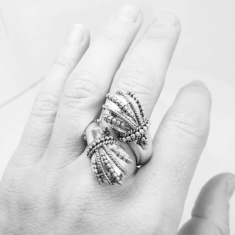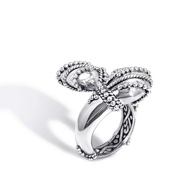 Batak Karo Plain Ring. Handmade in silver. Plain and smooth surface with balls and braids decoration. Inside is engraved. Made in Bali workshop. Original EthnoPur design.