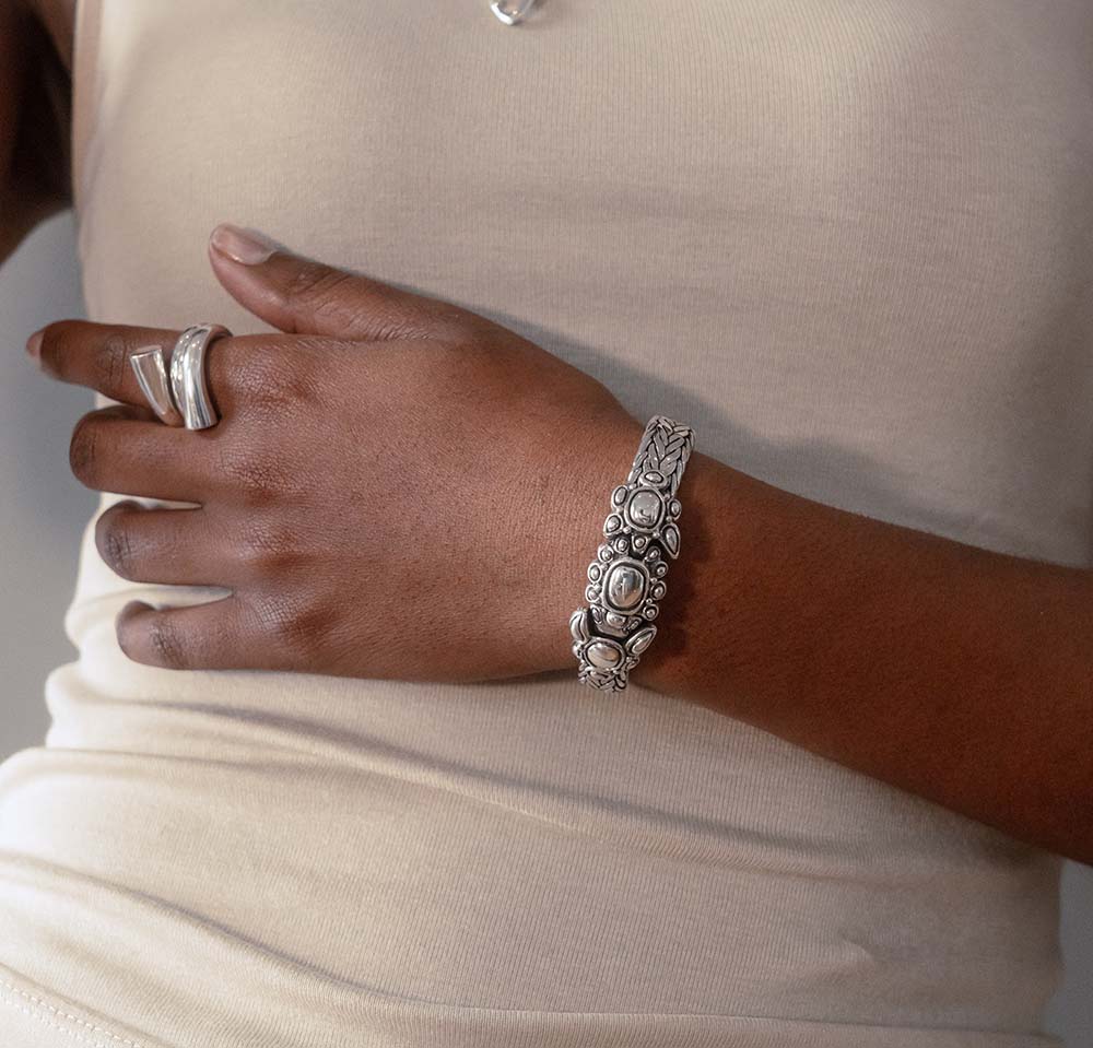 Crafted in sterling silver, it reflects the enduring dialogue between ancient Indian jewellery traditions and modern craftsmanship. A timeless piece that embodies cultural exchange, artistic evolution, and the lasting influence of Mughal design.