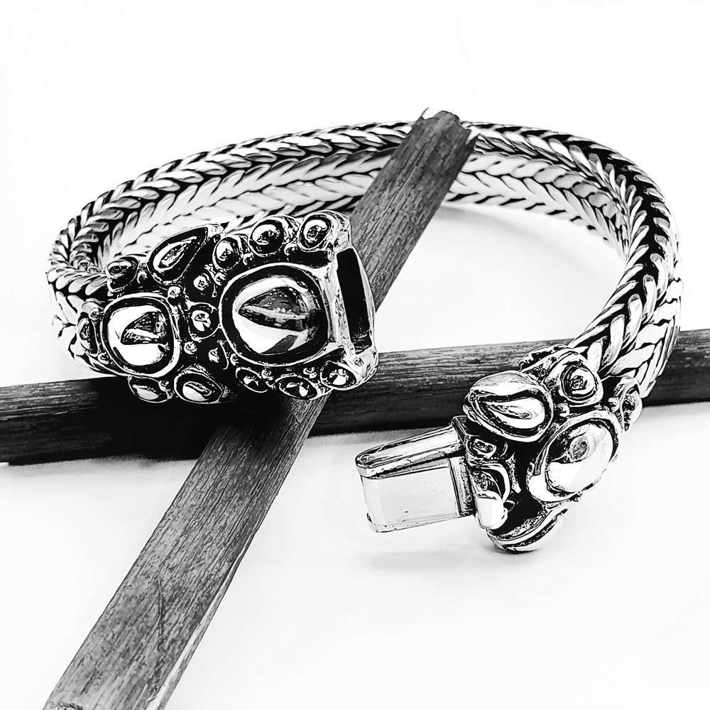 Design: Classic Tulang Naga (Dragon’s Bones) weave for a striking, textured finish