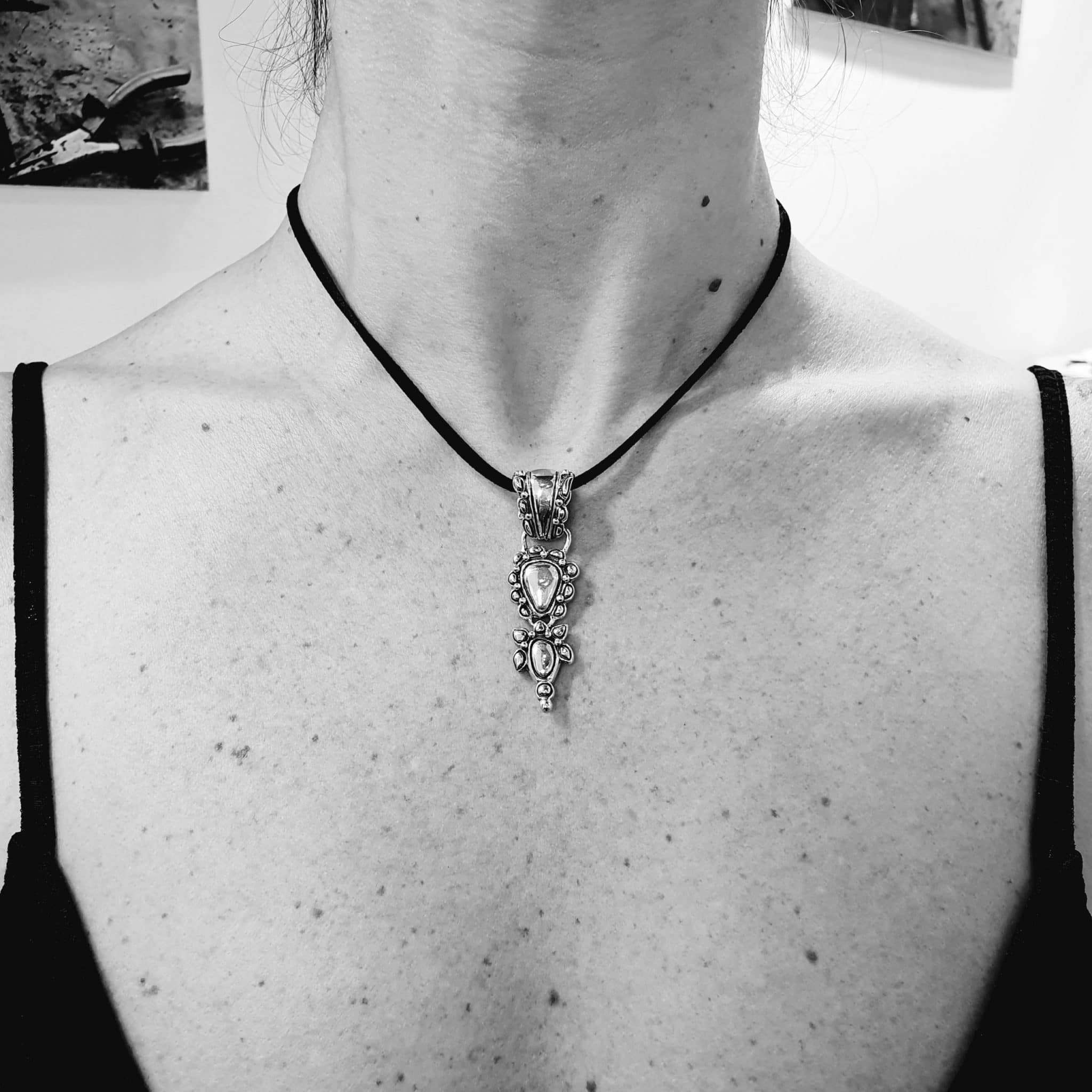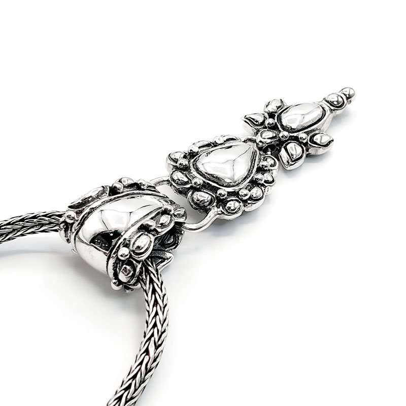 The Bazuband Silver Pendant was handmade in Silver. It has delicate engravings on the back. So it can be worn both sides.Total length: 48mm