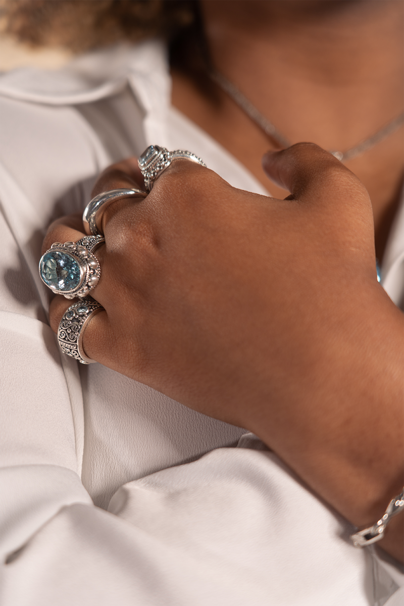 The sides are adorned with intricate bead and braid details, adding a timeless and artisanal charm. The interior of the ring features a beautifully engraved motif, offering a touch of uniqueness and craftsmanship. Ring’s dimensions include a top height of 25 mm, a bottom height of 7 mm, and an approximate weight of 18.5 grams, offering a perfect combination of elegance and comfort.