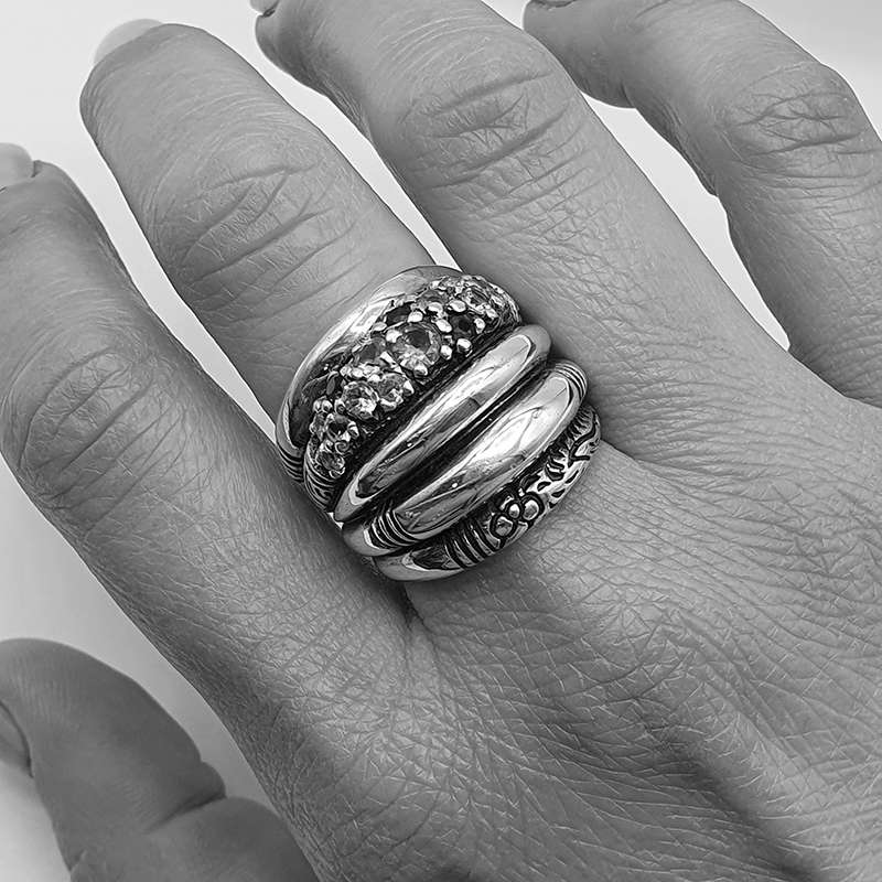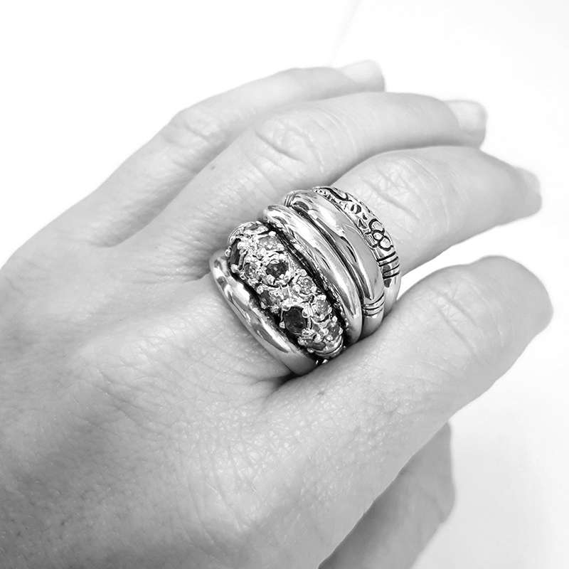 Big Multiring Silver and Gold Blue – Golden Triangle Collection