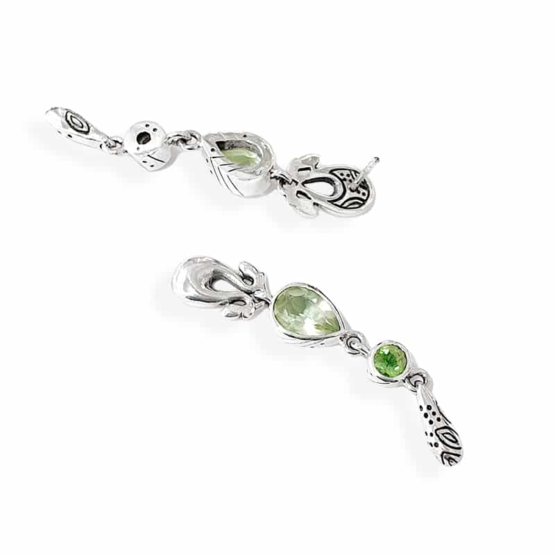 The Green Quartz Long Tribal Earrings are handmade in silver. Total length is 45 mm