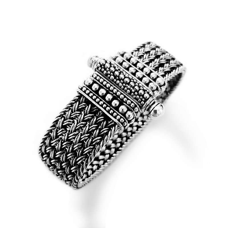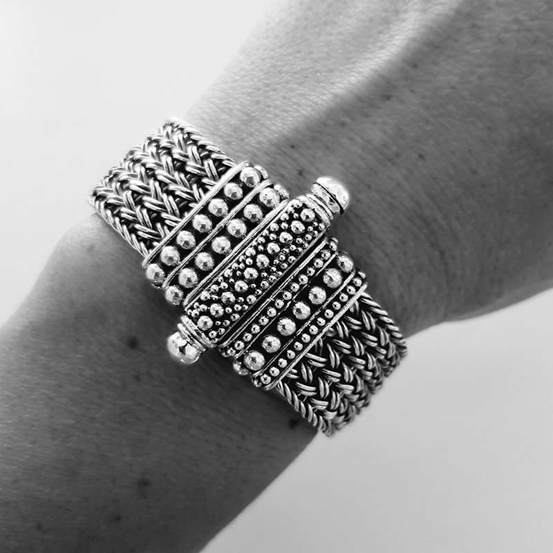 Growing Borobudur Silver Necklace is a One of a Kind Handweaved Chain. It’s width starts from 5 until 10 mm. Closure was decorated with balls and is possible to extend from 43 to 50cm.