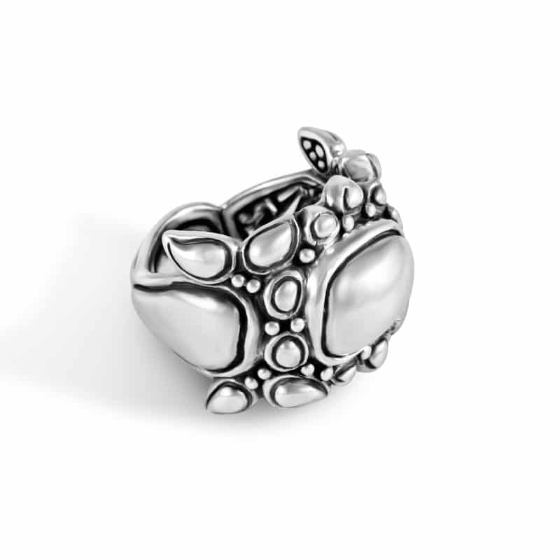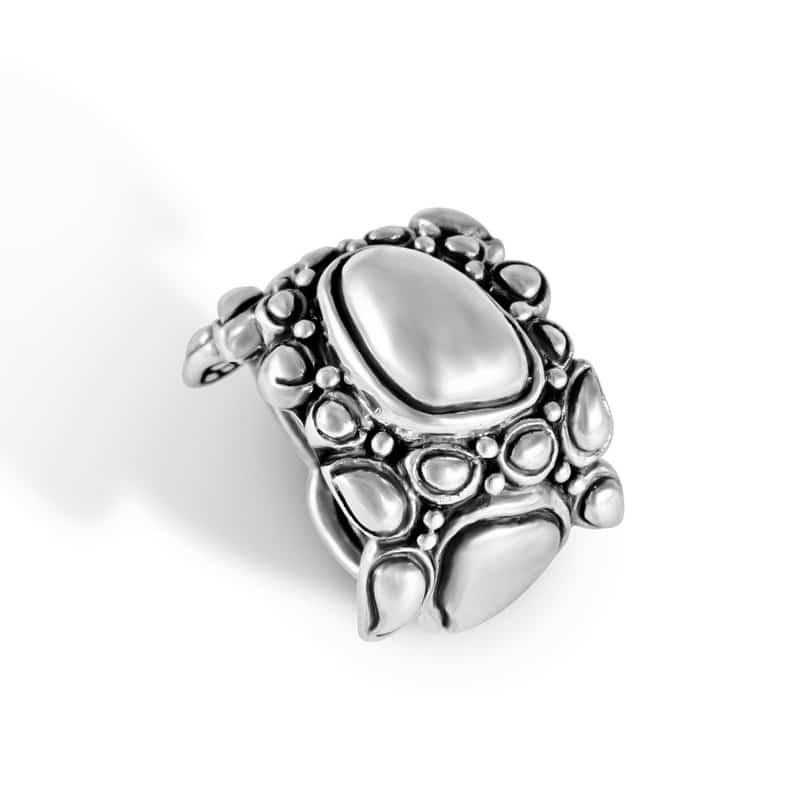 Handmade Bazuband Ring in silver. It has a delicate inside motif and tiny balls hand applied adorns the piece.