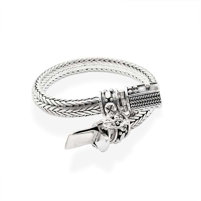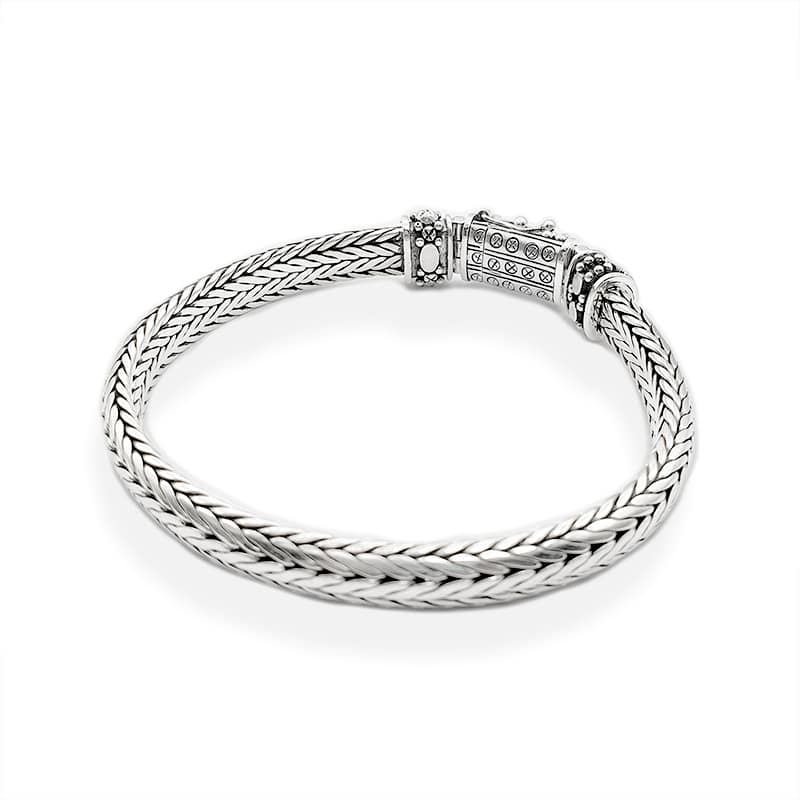 Hanweaved Silver Batak Toba Bracelet. Made with a 8mm width chain this piece has a unique closure inspired in Batak Toba Tribes motifs.
