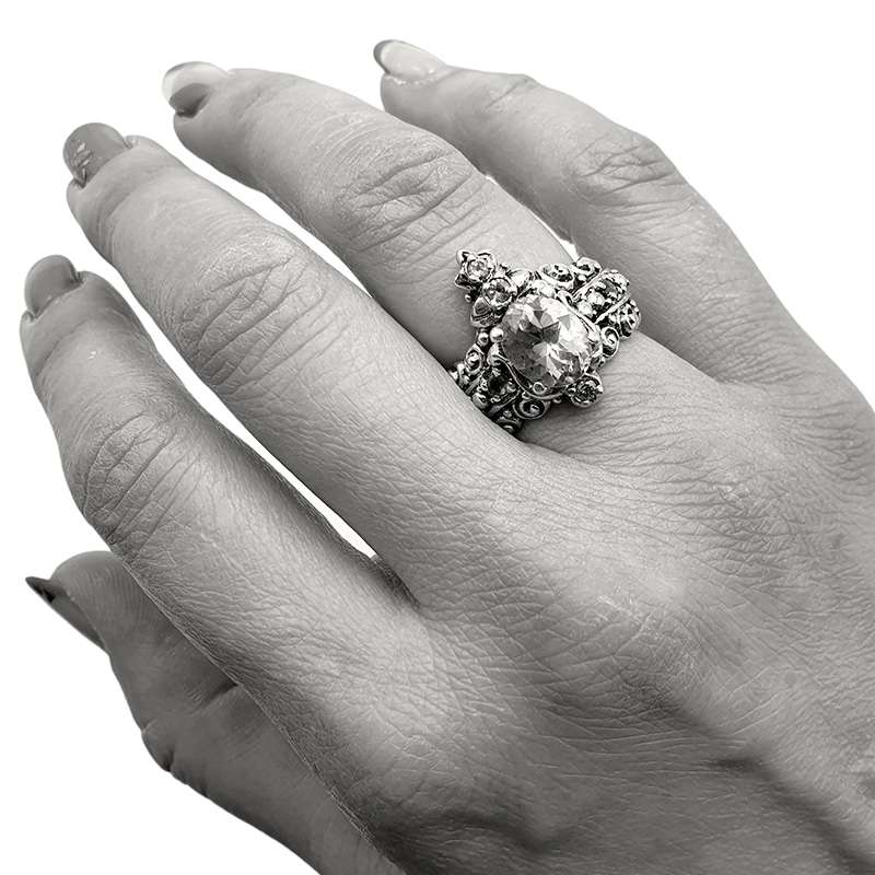 The Hindustan Kalgi Ring was carved in wax and forged later in silver. It was adorned with Gold details and setted with a central blue topaz, dark diamonds and sapphires.