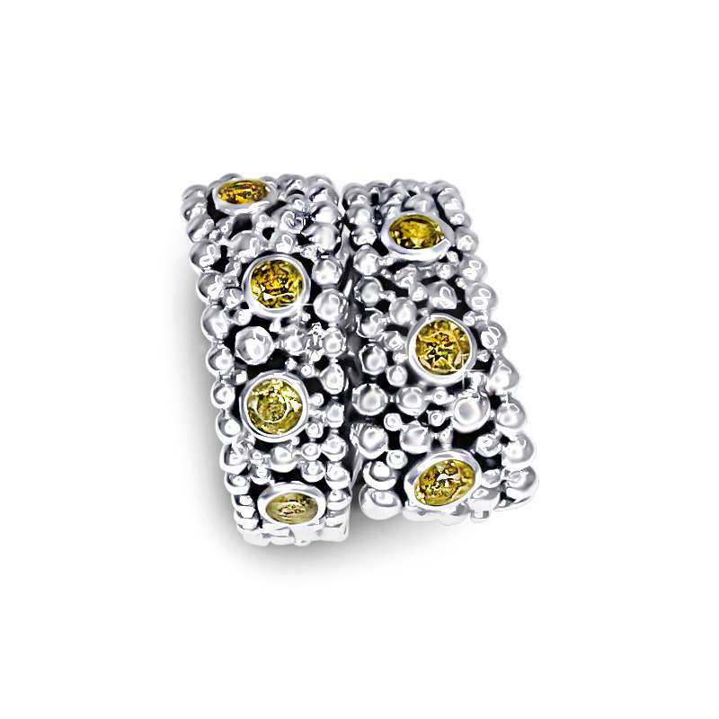 This ring is handcrafted in sterling silver, inspired by the ritualistic children’s bracelet from Bali, a classic piece of traditional Balinese jewellery. With citrines, this is the medium model in a collection of three pieces. Explore the small and large models for even more impact.