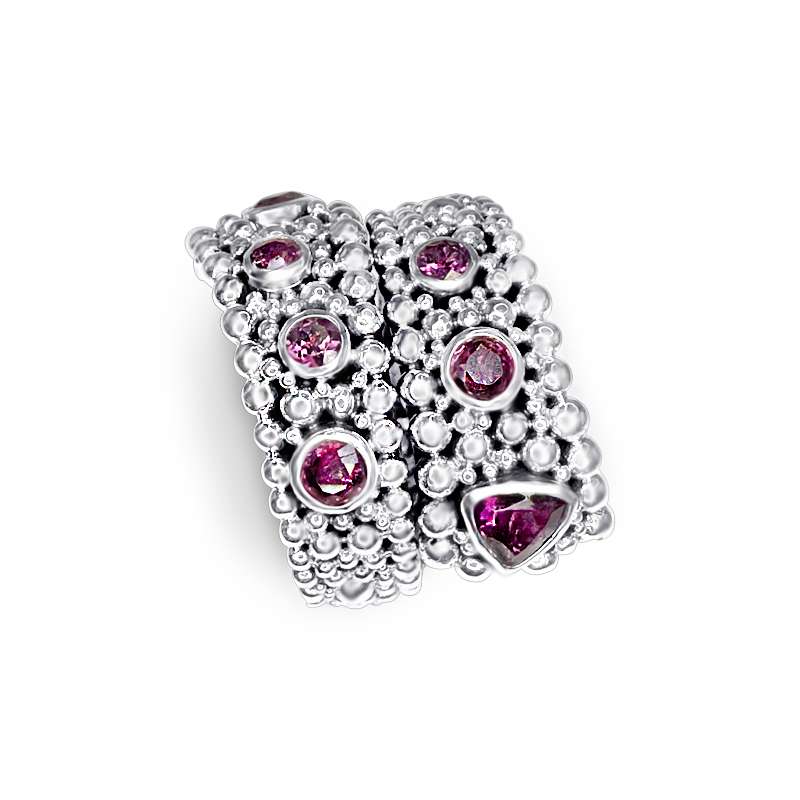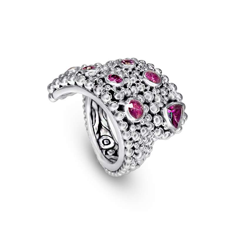 Lombok Style Handmade Granulated Silver Ring with Rhodolite Garnet – Medium Model