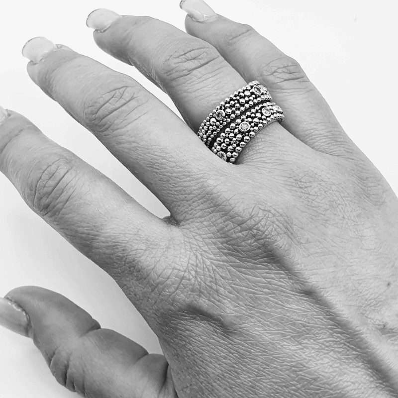 This is the small model in a collection of three pieces. Explore the medium and large models for even more impact, complementing this design perfectly. Additionally, this ring is available with various gemstones to suit your personal style.