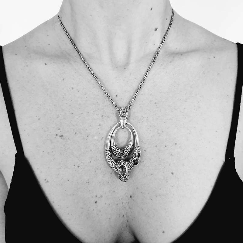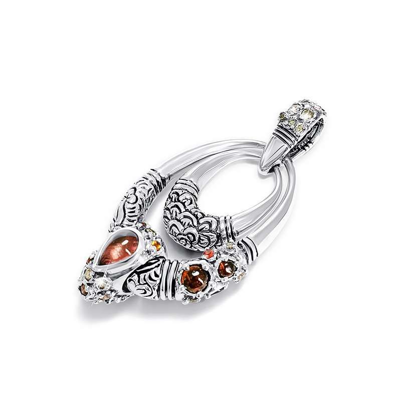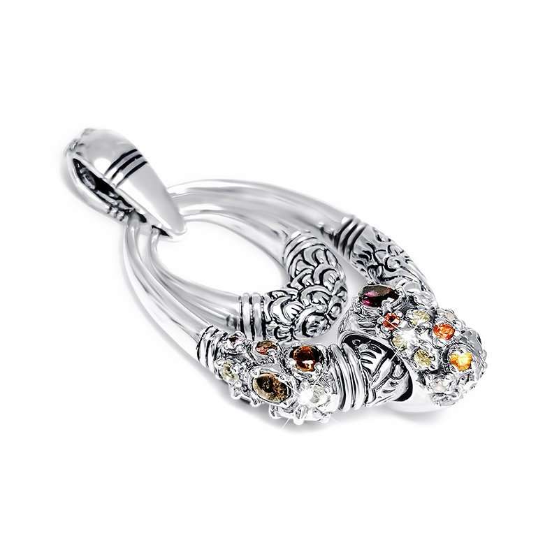 Miao Pendant Tourmaline Drop with small Diamonds and sapphires in pink, orange and red shades.