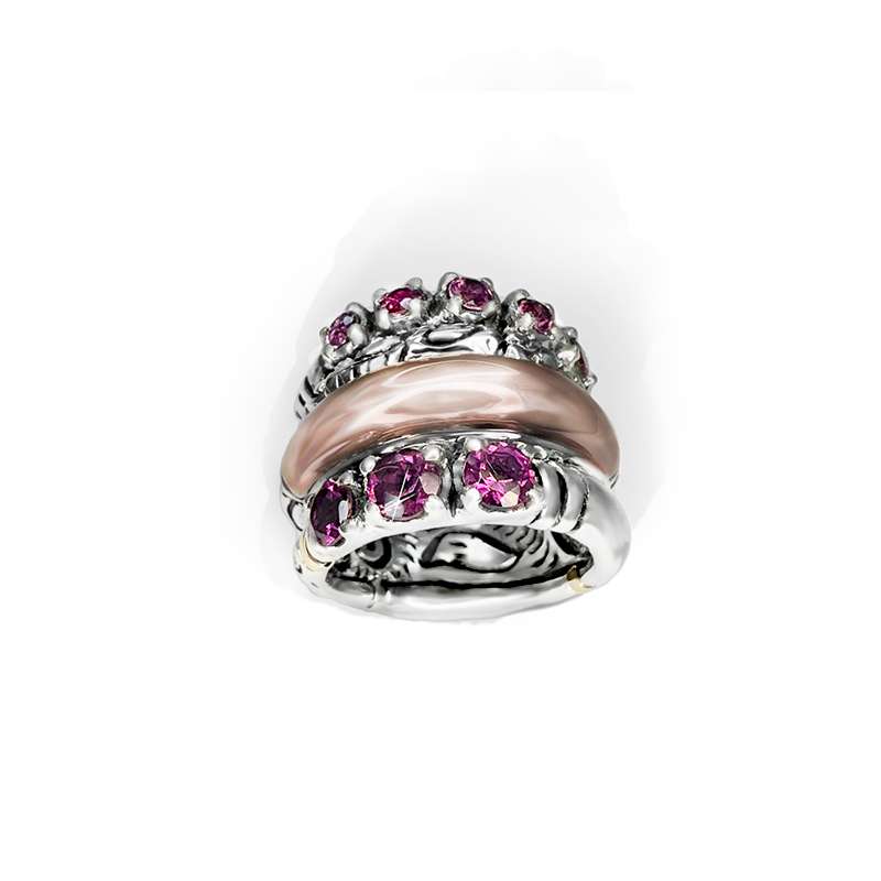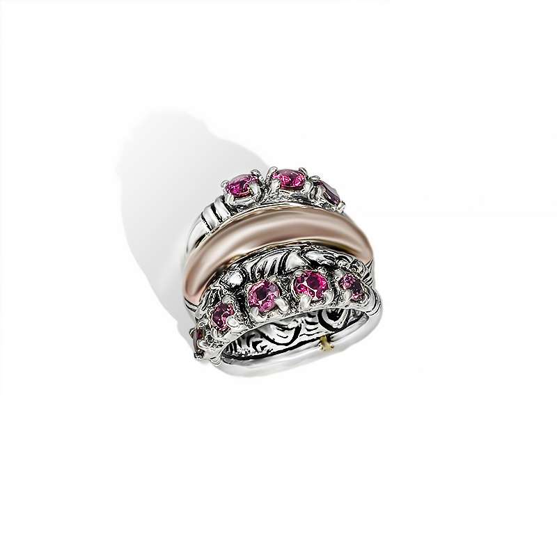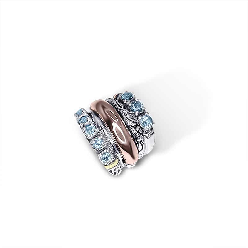 Multiring Silver and Gold Ring with Green Gemstones – Golden Triangle Collection