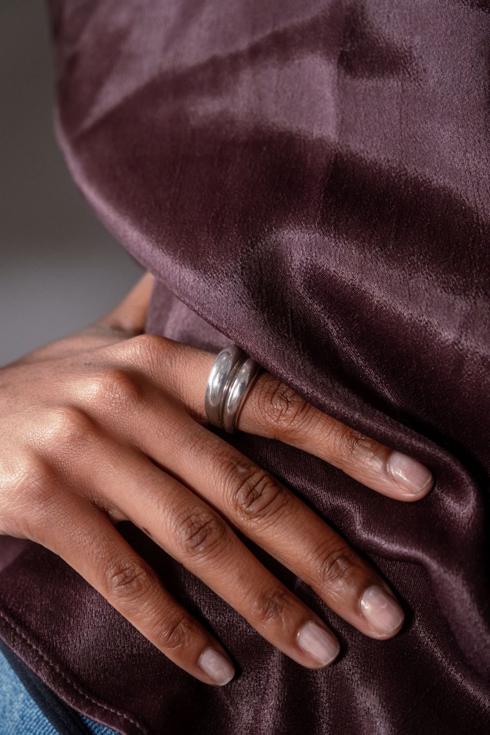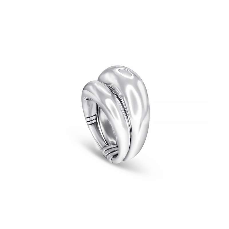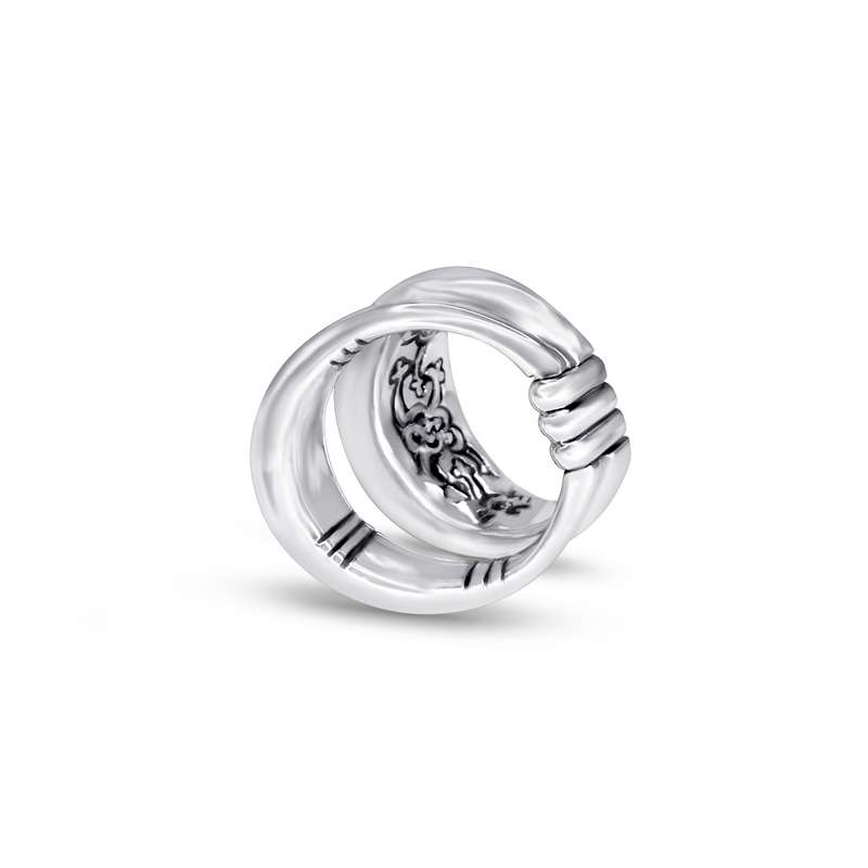 Sculptural, elegant, and entirely handmade, this distinctive Silver 950 ring is crafted from two individual bands, skillfully joined at the base by our expert silversmiths. The bands move subtly and independently, offering a unique, comfortable fit.