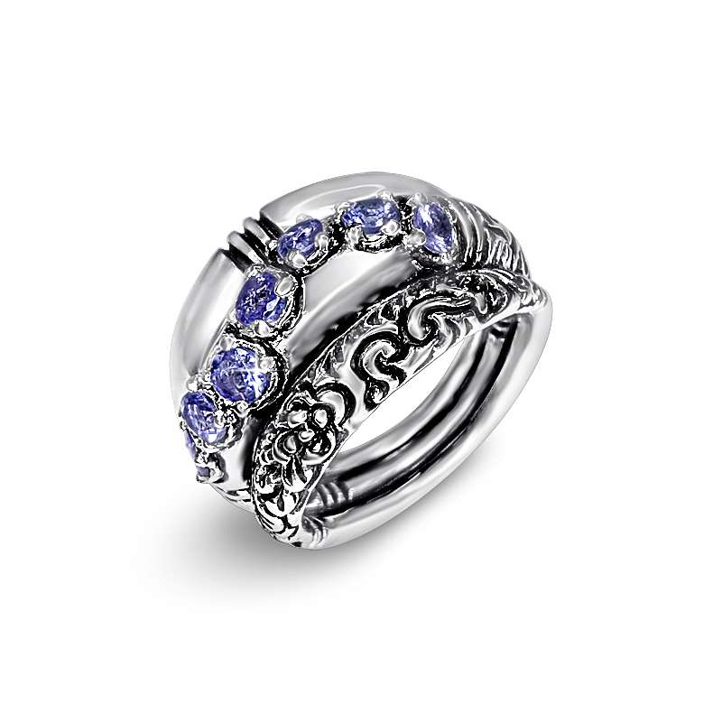 Multiring Silver 3 Rings with Amethyst Stones – Golden Triangle Collection