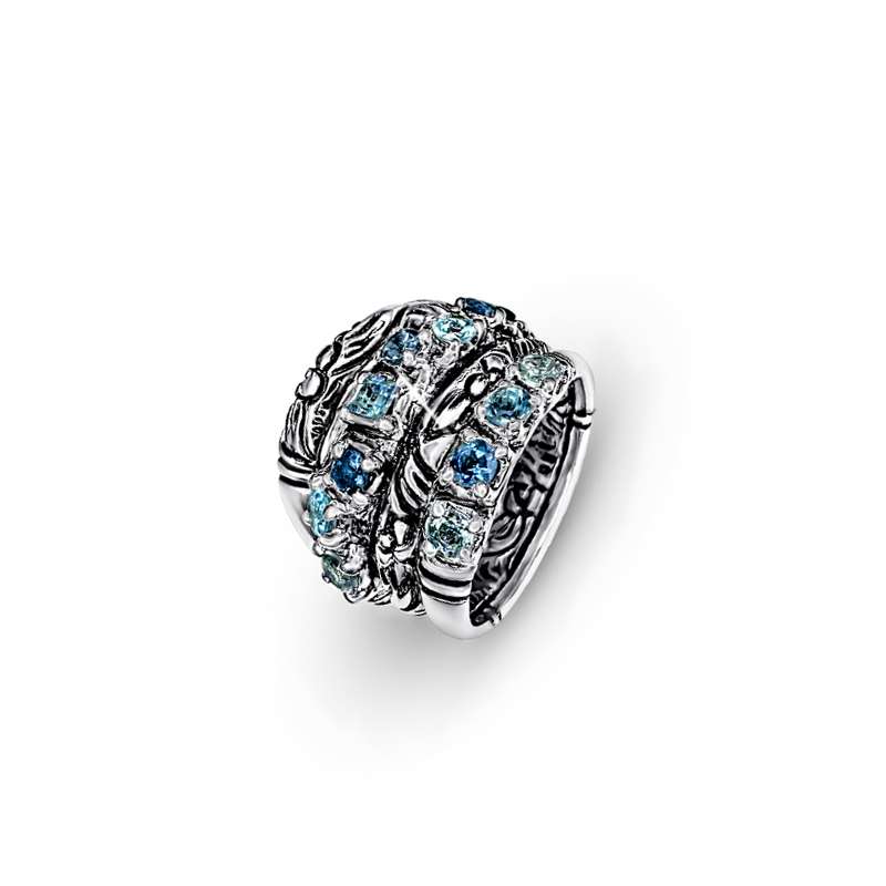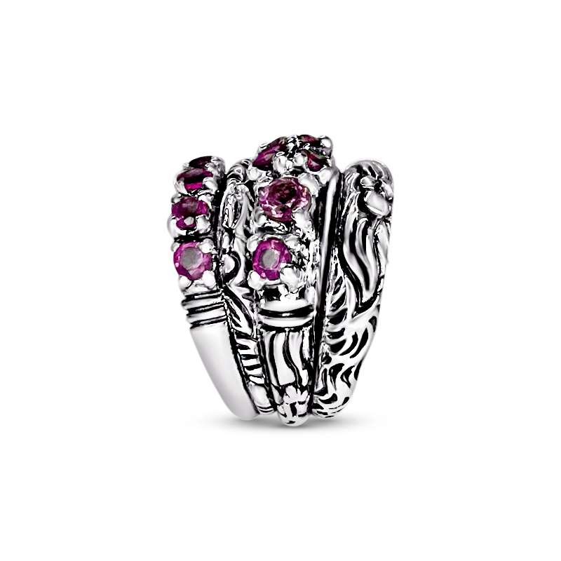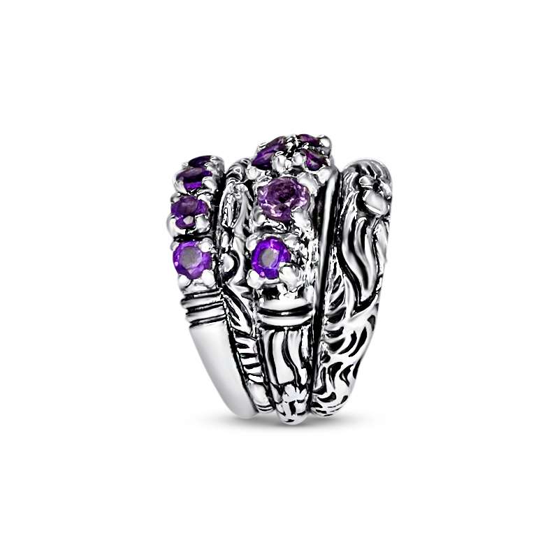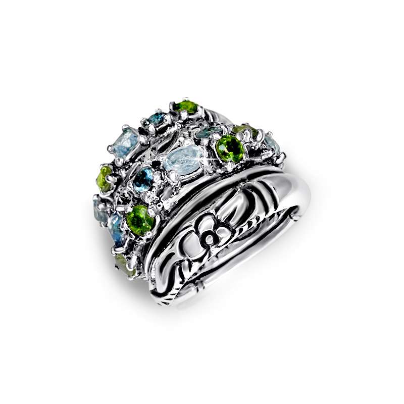 This sterling silver ring showcases a warm, radiant blend of citrine and smoky quartz, reflecting the golden hues of sunlight and the earthy elegance of nature. Its layered design mimics five stacked rings, inspired by the mountain tribes of the Golden Triangle, blending cultural heritage with contemporary style.