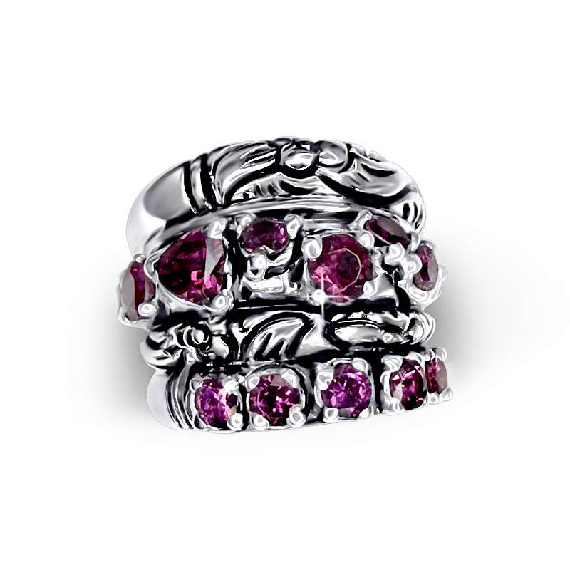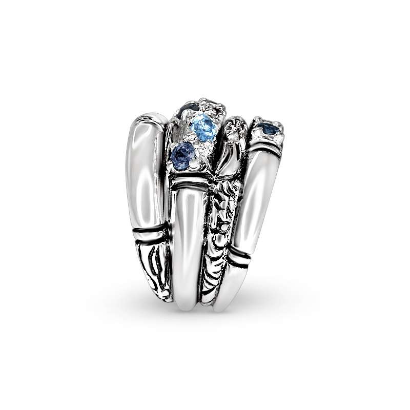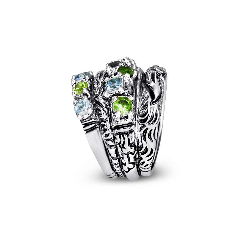 Multiring Silver 5 Rings with Citrine & Smoky Quartz – Golden Triangle Collection