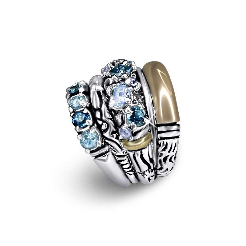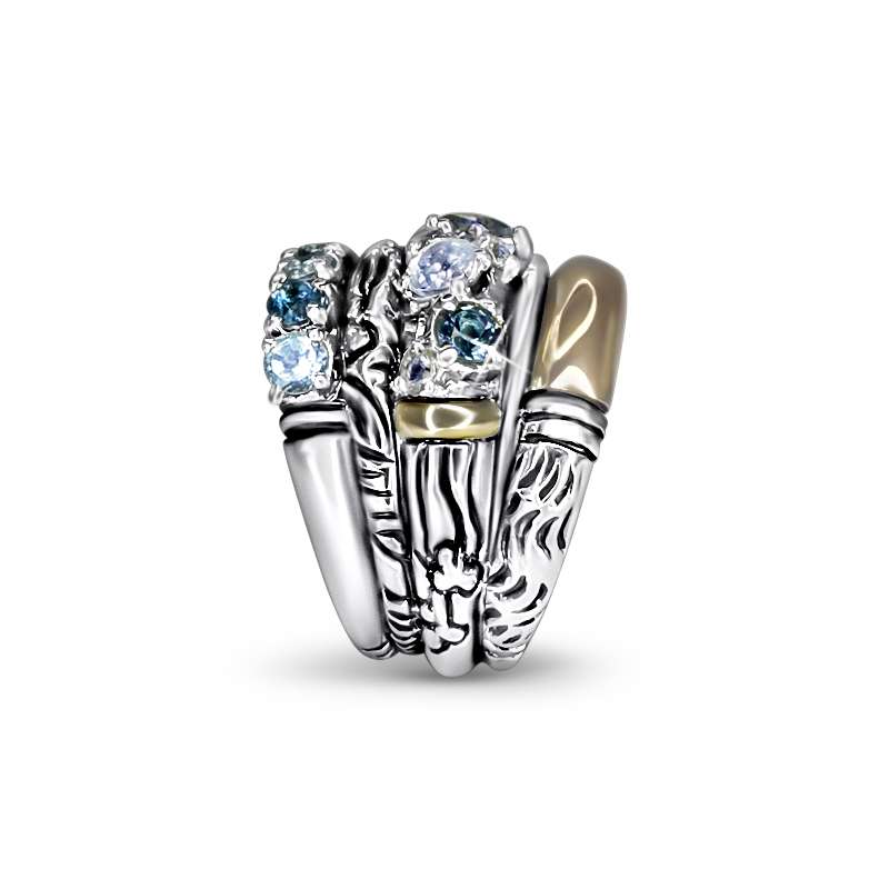 Multiring Silver and Gold Ring with Topaz – Golden Triangle Collection
