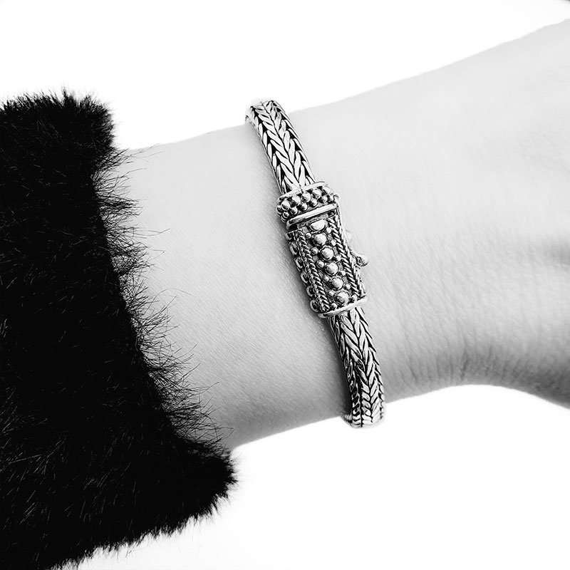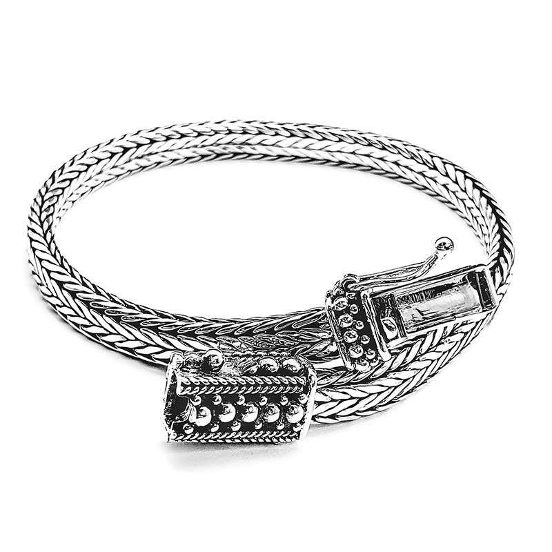 Orito Handmade silver bracelet, high quality craftsmanship makes this chain very smooth with a one of a kind closure decorated with delicate motifs.