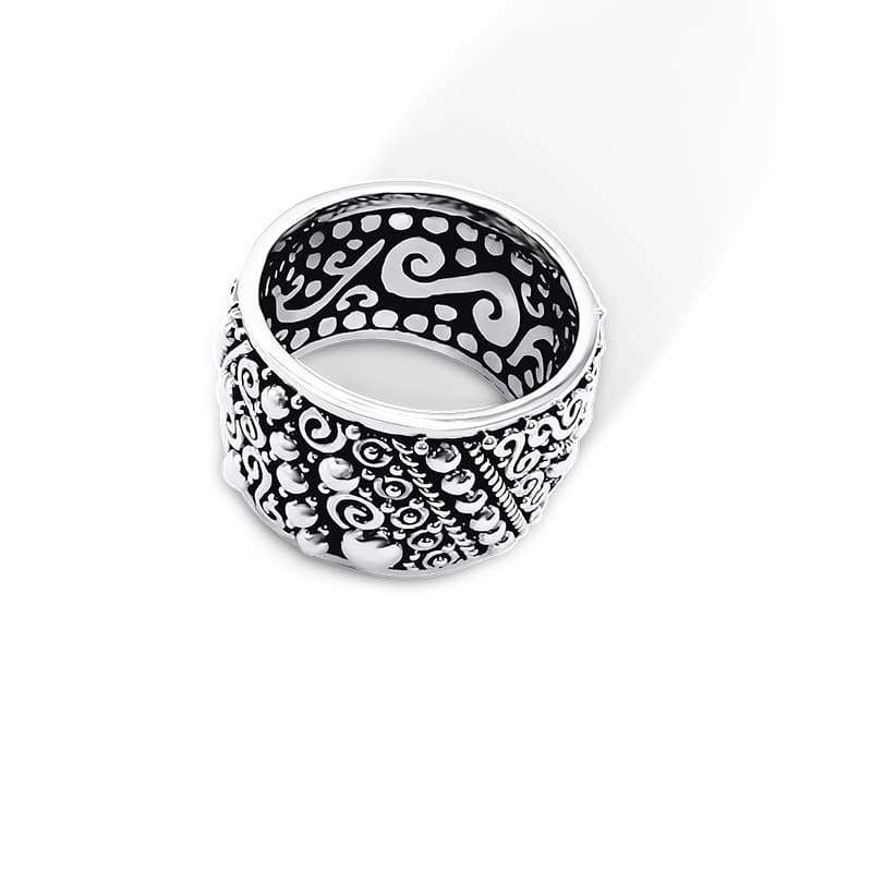 The Orito Ring is one of our most intricate pieces. The exterior is adorned with meticulously handcrafted filaments and small spheres of varying sizes and positions, while the interior features the distinctive ‘S’ shaped spirals engraved within. This uniquely crafted ring serves as a statement piece, with each one possessing subtle variations, ensuring that no two are ever identical.