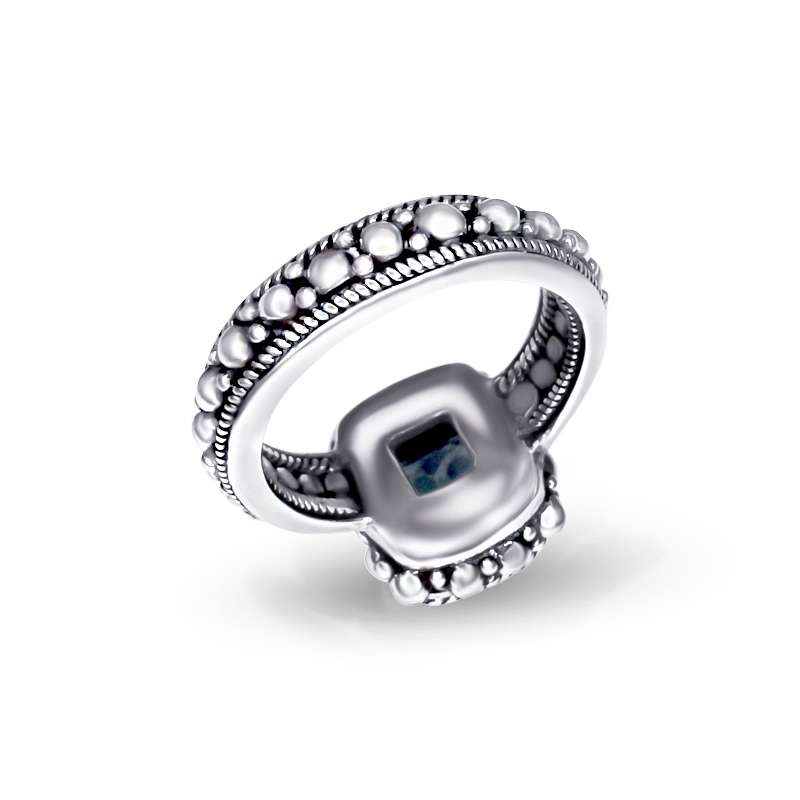 Ornate Sterling Silver Ring with Rectangular Blue Topaz – Solitaire Austronesia Collection