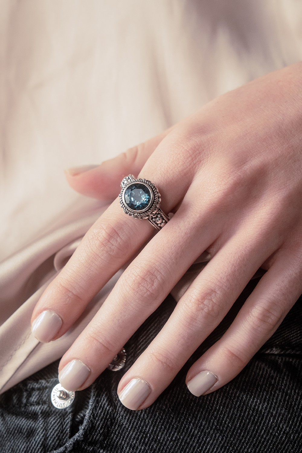 Handcrafted in Indonesia by expert Ethnopur silversmiths, the ring incorporates traditional wirework and granulation techniques passed down through generations. Inspired by Austronesian jewelry, it features a 6 mm-wide textured band engraved on the inside for a refined, personal touch. Weighing 15 grams, it offers a solid yet comfortable feel for everyday wear.