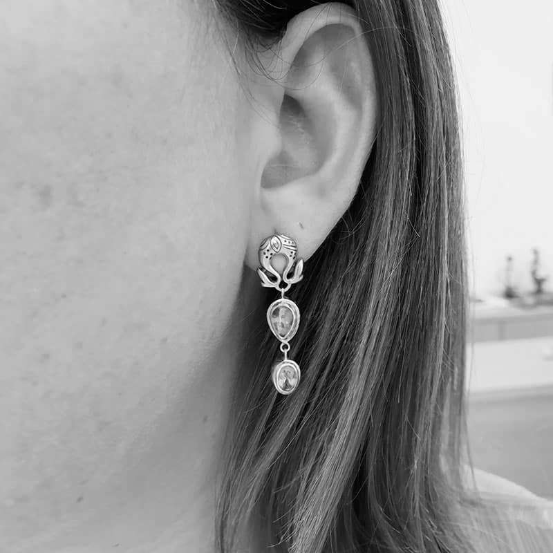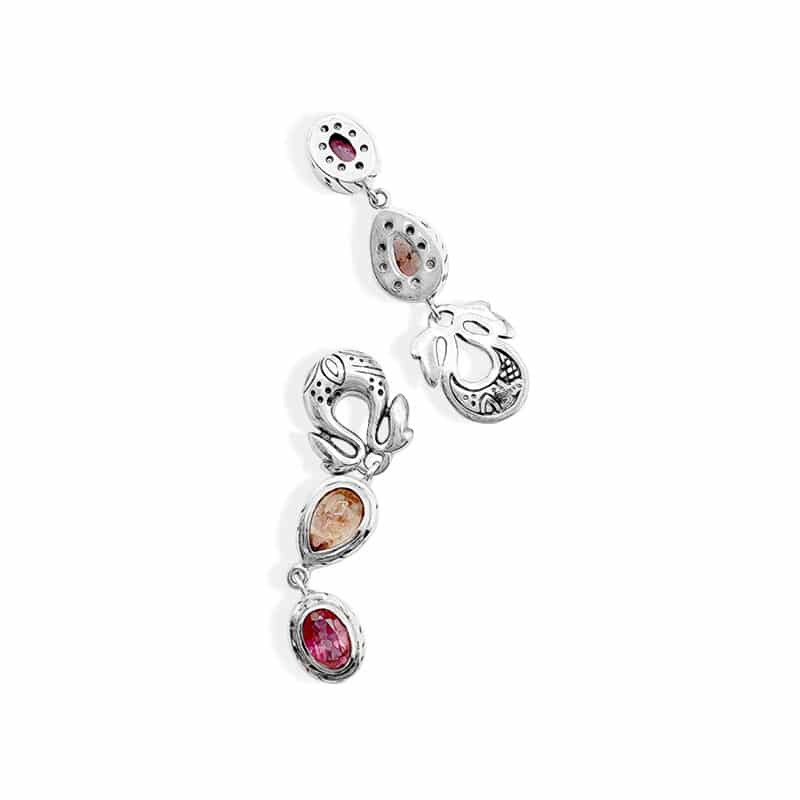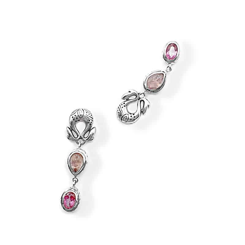 Pink Quartz & Topaz Tribal Earrings are handmade in silver.  Total length is 30mm