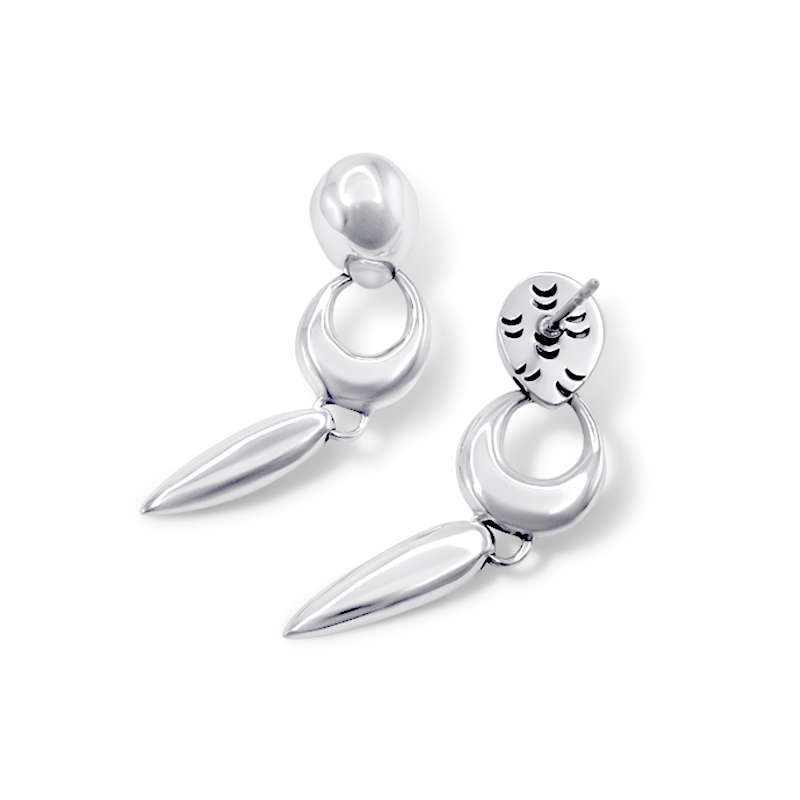 Measuring 41 mm in height and 12 mm in width, weighting approximately 11 grams, their polished, shiny white silver finish brings a radiant sparkle to your style, making them versatile enough to complement both casual looks and more formal ensembles.