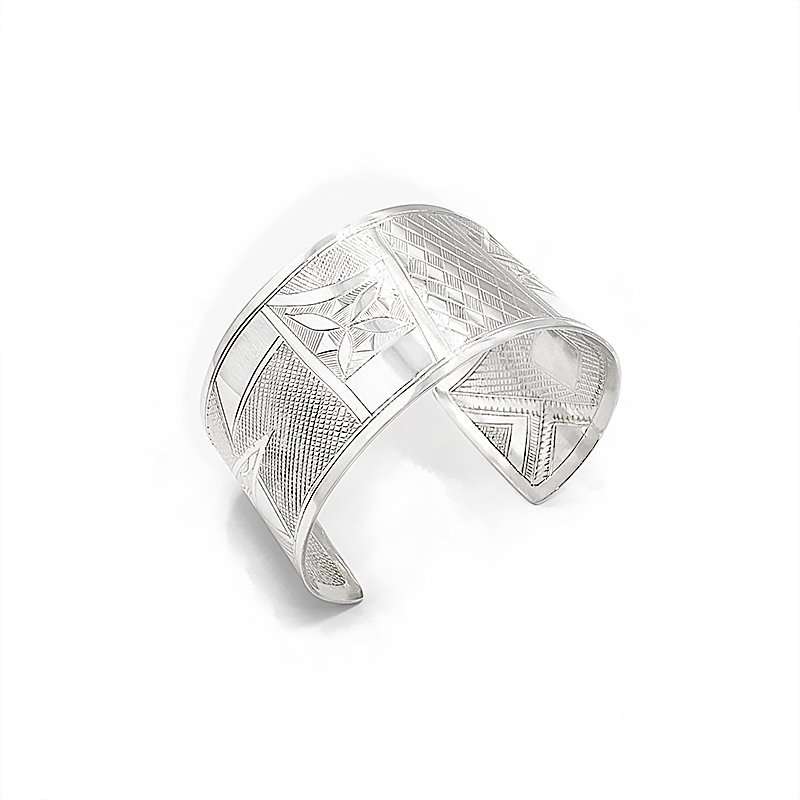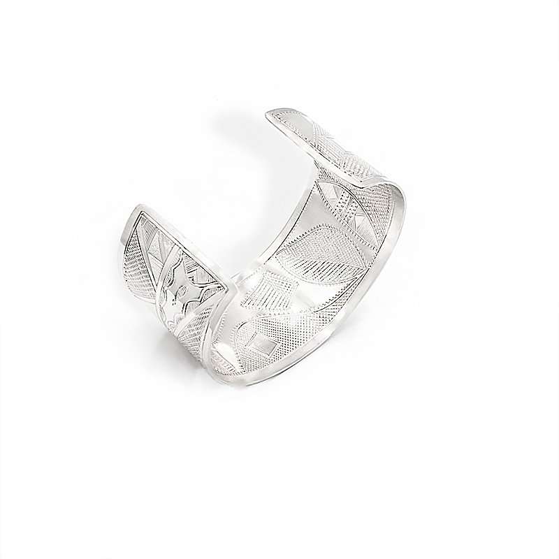Pure silver Tuareg Cuff handmade by Tuareg smiths in eThnopur’s Niger workshop. The width is 36mm and it is engraved inside and outside.