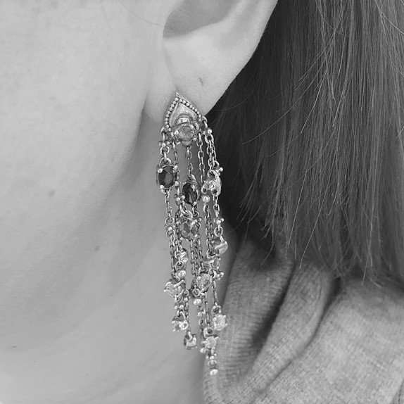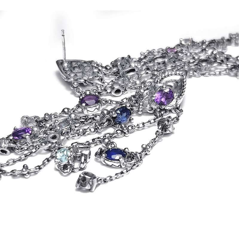 Rajasthan Arsi earrings have dangling chains moving all around, with Topazes,Sapphires and Amethysts setted