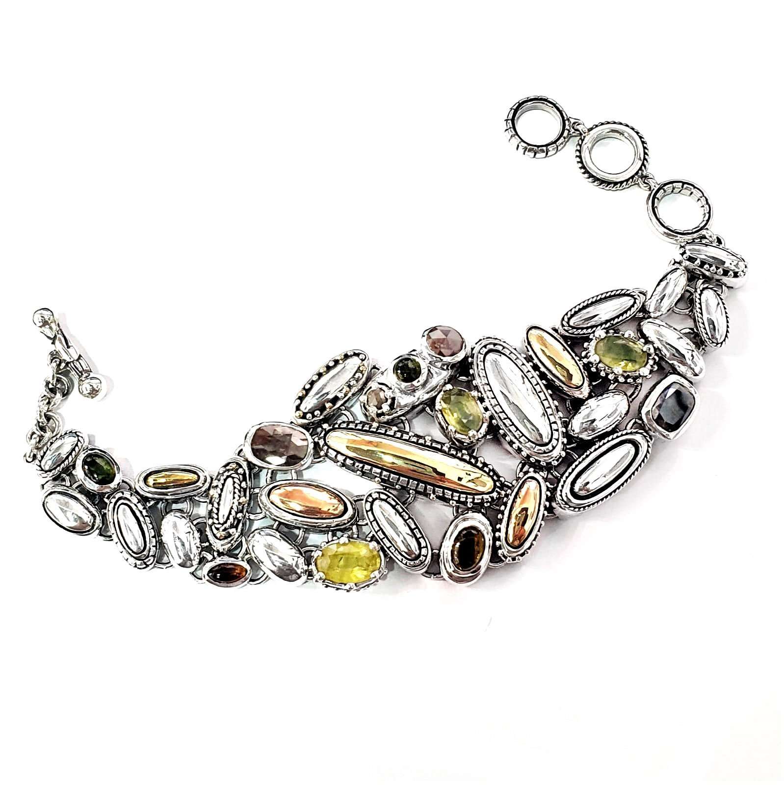 Shield Articulated Bracelet. Made in silver with gold details, tourmalines, diamonds and sapphires