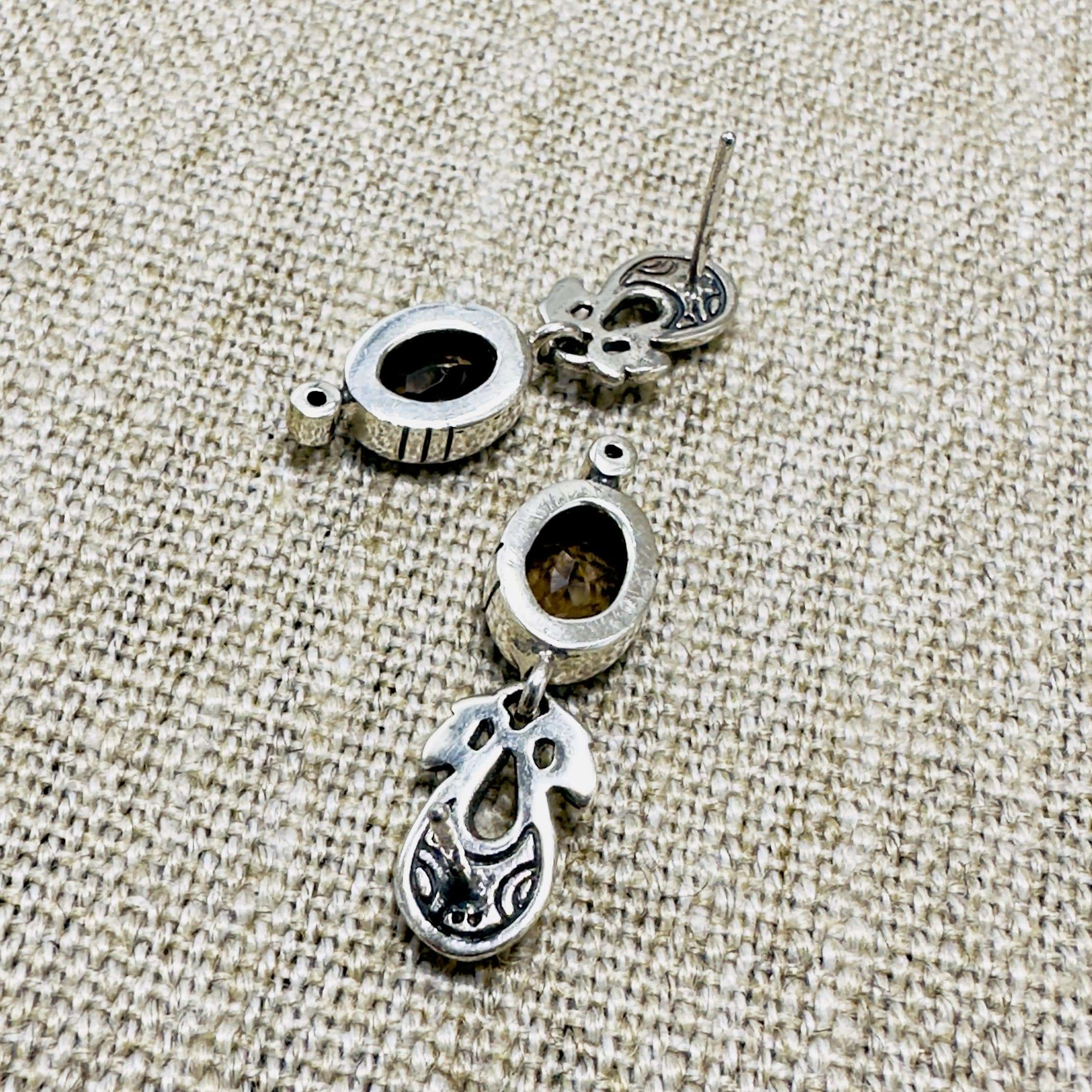 Smoky Quartz Tribal Earrings are handmade in silver with a dangling stone each. Check the back side of the earrings! Total length is 21mm