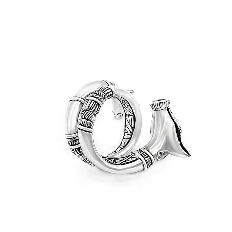 The Snake Ring in Blue is part of the Nordens Collection. Pieces found in excavations in Northern Sweden and Norway inspired this collection. In this case snake rings made out of gold which were part of warriors adornments. Sapphires displayed in this twisted ring.
