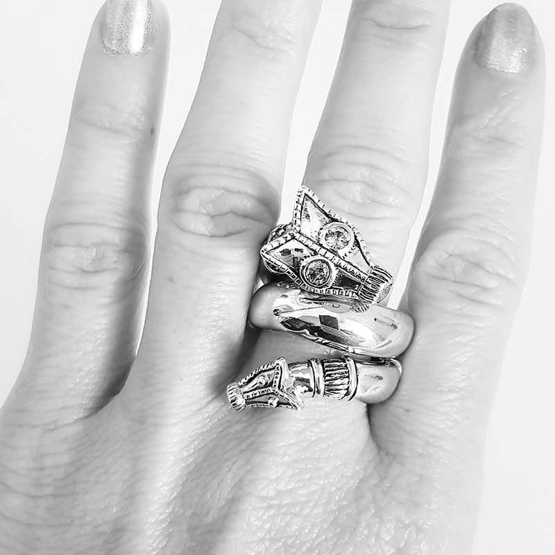The Snake Ring in bule  sapphires is part of the Nordens Collection. Pieces found in excavations in Northern Sweden and Norway inspired this collection. In this case snake rings made out of gold which were part of warriors adornments. Sapphires displayed in this twisted ring.