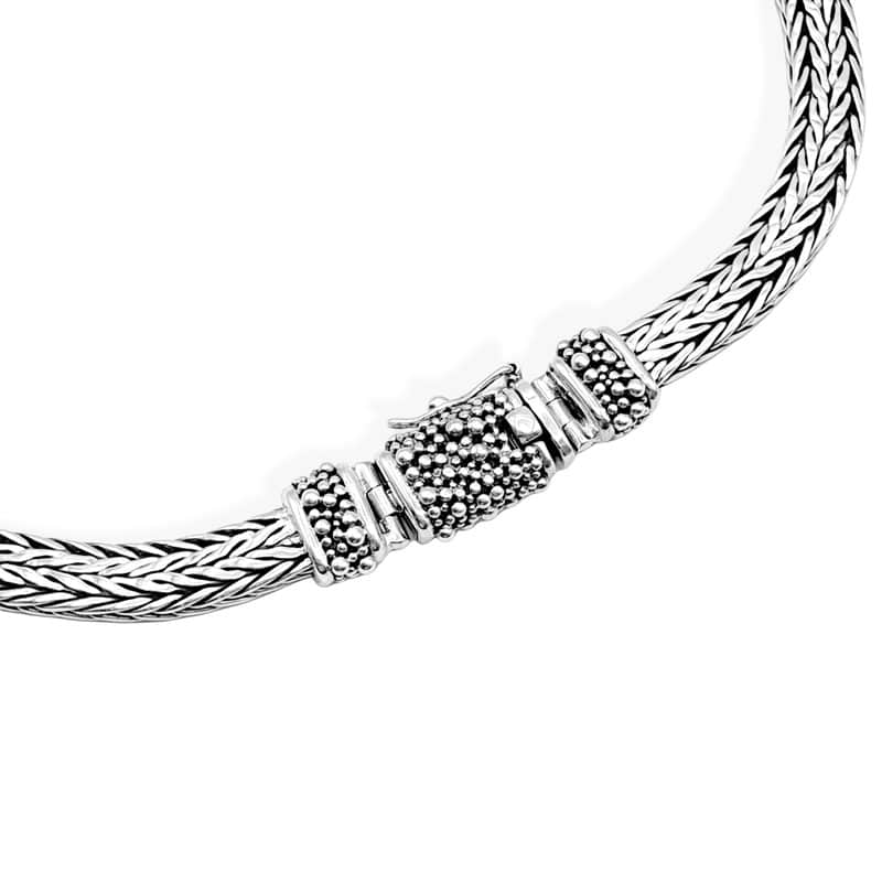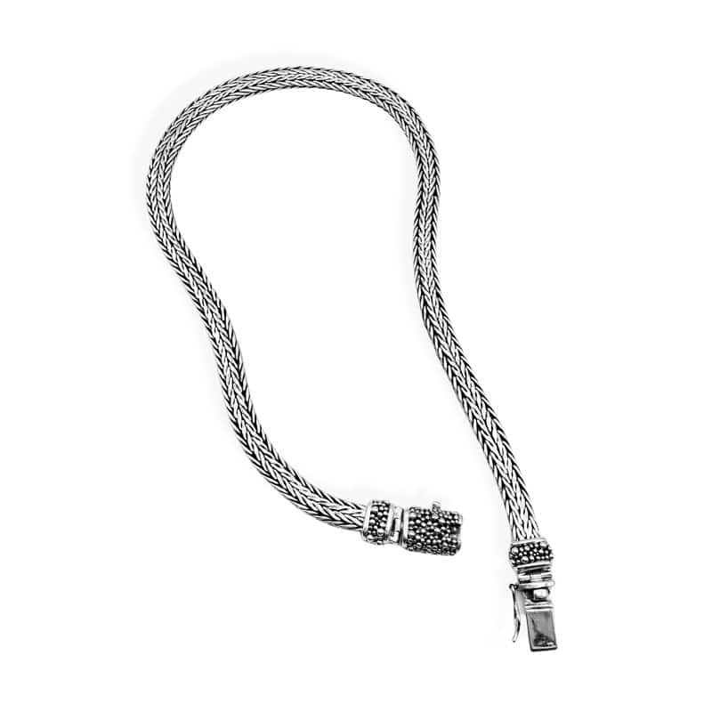 Snake Silver Chain is handweaved. It’s width is 8mm and is a one of a kind. The closure has the granulation techniques extensively used on Lombok. It is 50 cm length and you can order it custom made in other lengths.