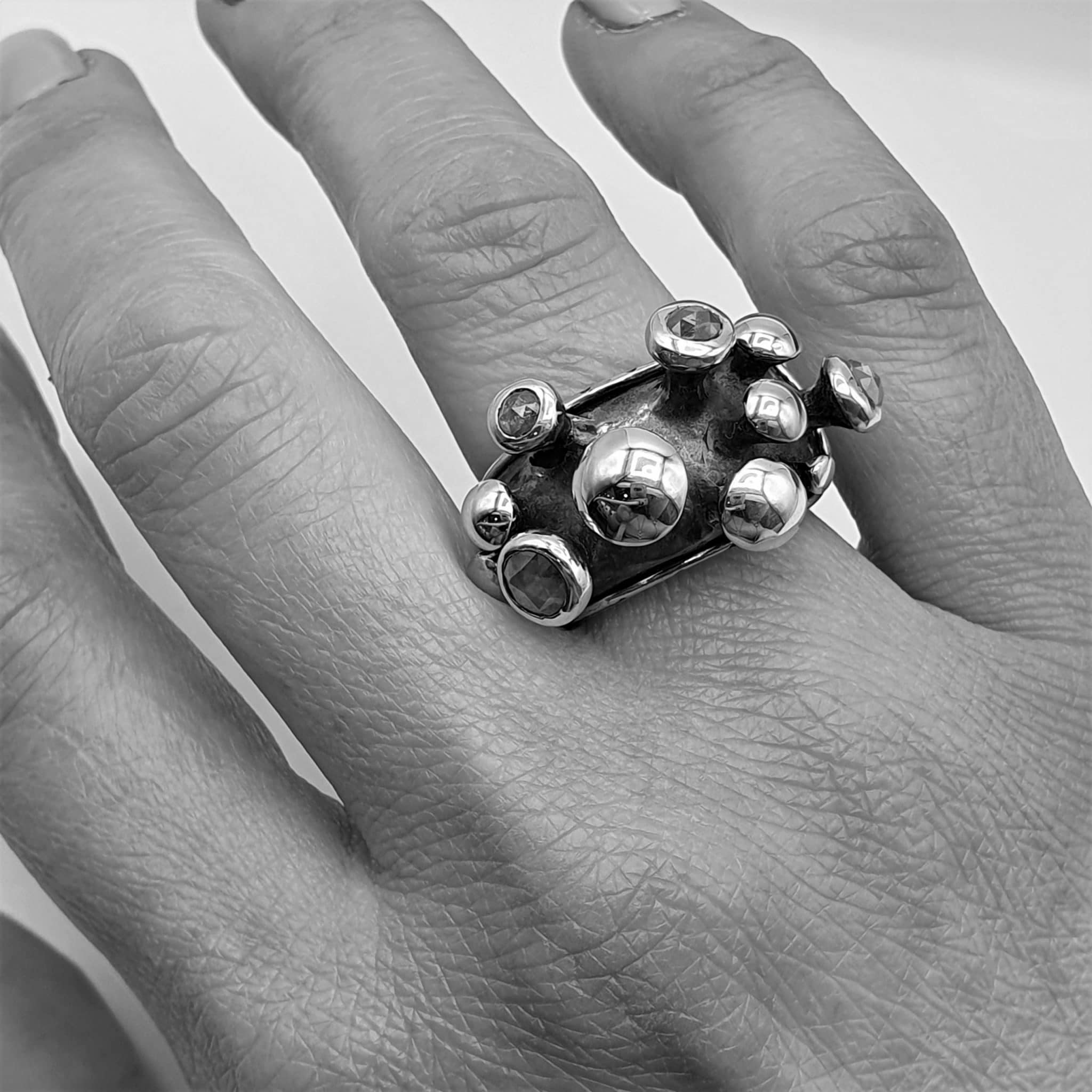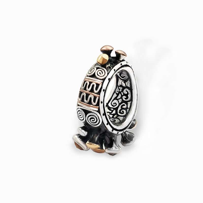 The Spikes Ring Nagaland was handcrafted and setted with diamonds and gold in red and yellow colour. The Naga tribes characteristic ornaments were EthnoPur inspiration for the shapes and concepts that originated the Naga collection. Only warriors were entitled to wear this kind of adornments. They indicate high status achieved through head-taking or combat.