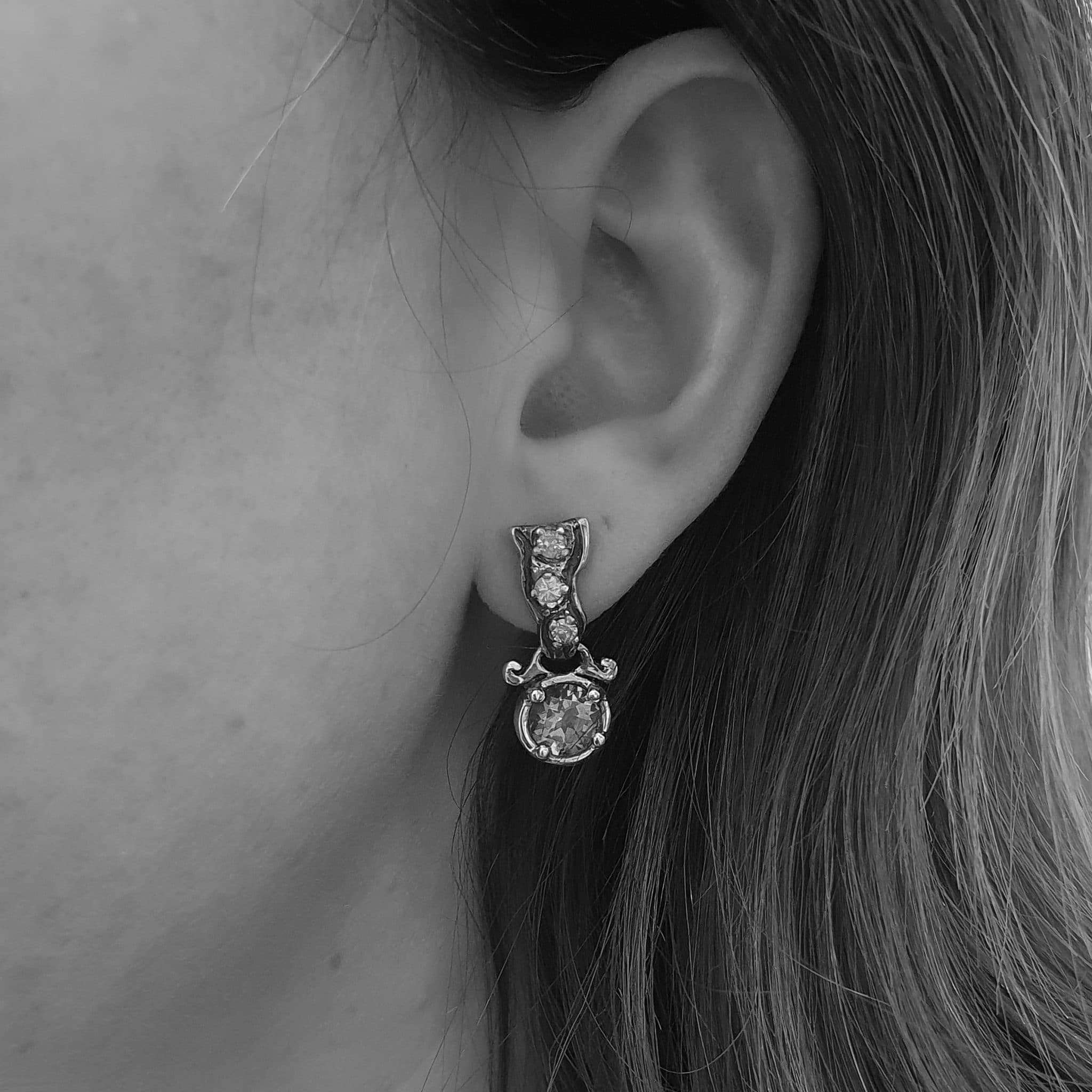 The Spiral Earrings belong to the Mountain Tribes Collection. Displayed with Topaces, Diamonds and Sapphires.