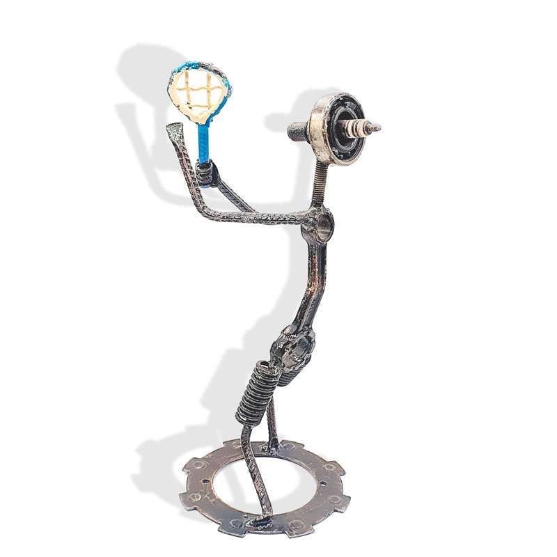 He uses old engines parts, abandoned bicycles, and destroyed tools that he finds walking around town to create sculptures.