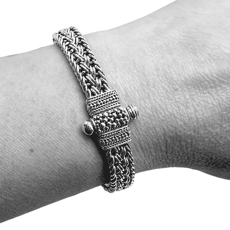 The ThaiWeave Bracelet is Handmade in silver, high quality craftsmanship with a one of a kind Lombok Style closure. 8mm width
