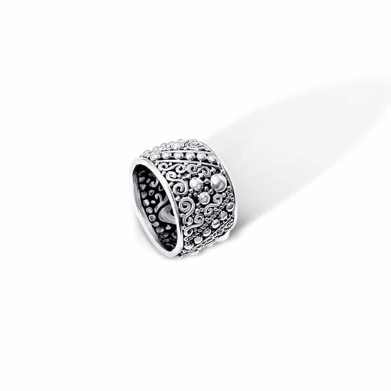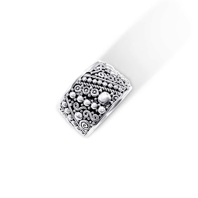 Inspired by the traditional jewellery of the Indonesian archipelago, the Timor Mesh Bracelet reflects the ancient use of spiral shapes, fine silver filaments and small silver spheres once worn during ceremonies and festive gatherings.