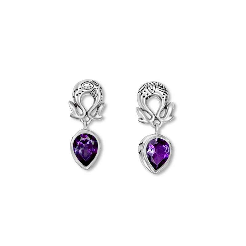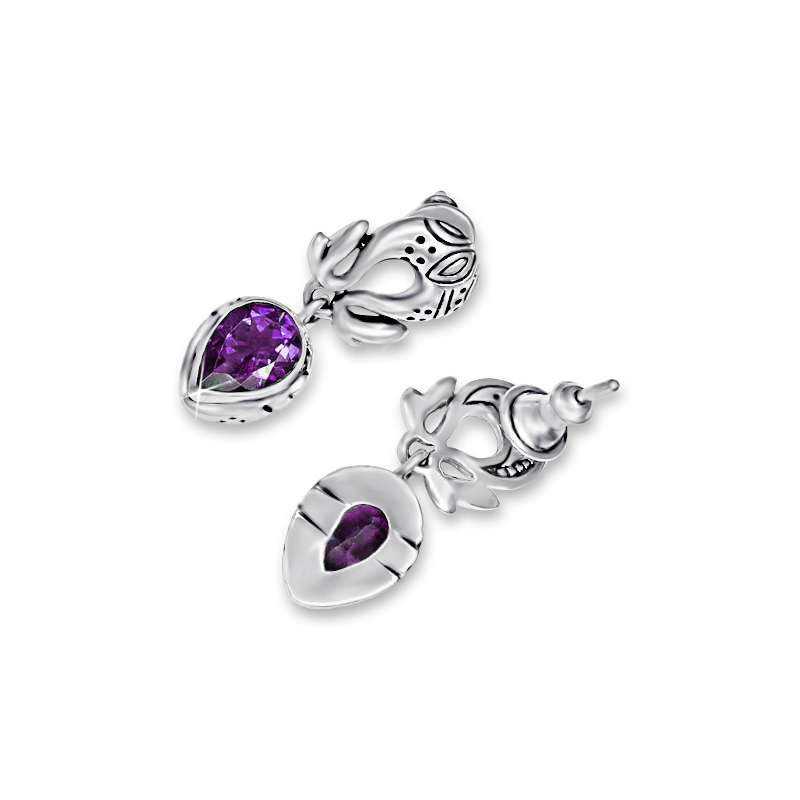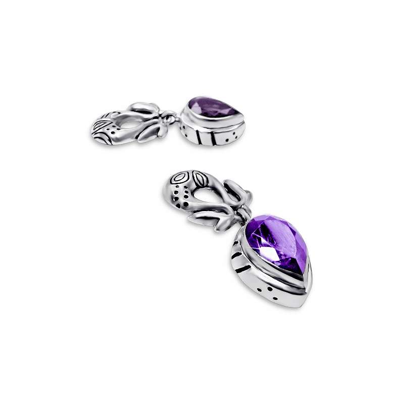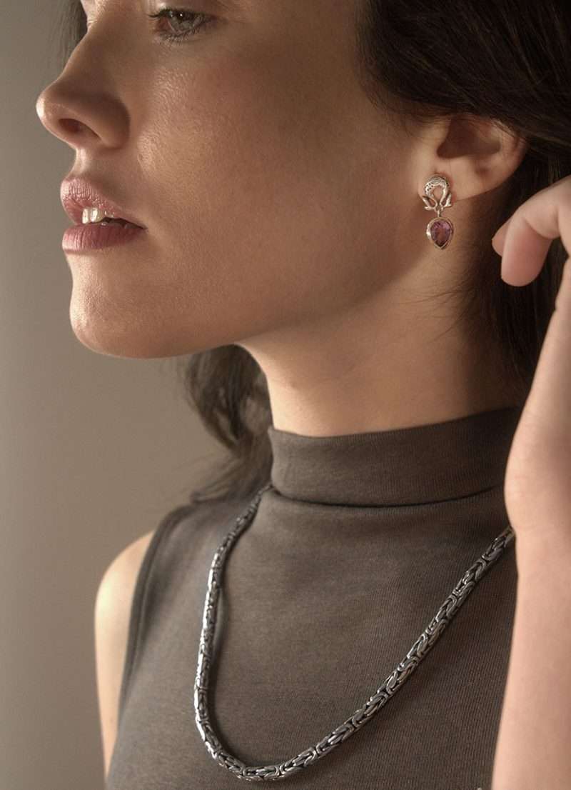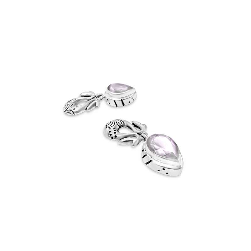 Handcrafted in sterling silver, these earrings feature natural pear-shaped Amethyst or Rose Quartz gemstones. Amethyst captivates with its deep purple mystique, while Rose Quartz radiates a soft, romantic glow. Delicate engravings and oxidized accents enhance the silver’s texture, adding depth and character.
